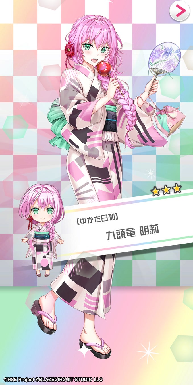 7月10日(木)12:00より開催いたします期間限定のスカウトでは、【ゆかた日和】九頭竜 明莉が新衣装で登場します。期間限定での登場となっていますので、ぜひこの機会に入手してください!