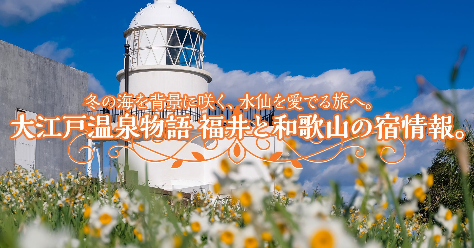 厳冬から開花を始める花を愛でる温泉旅へ。水仙を愛でる旅の拠点にお薦め、福井県と和歌山県の大江戸温泉物語の2つの宿。