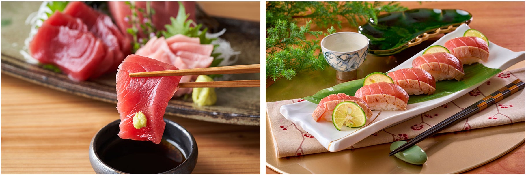 握り寿司は、とろける上質な脂が生とは異なる美味しさを楽しめる炙りと生の2種類を食べ比べでお楽しみください。