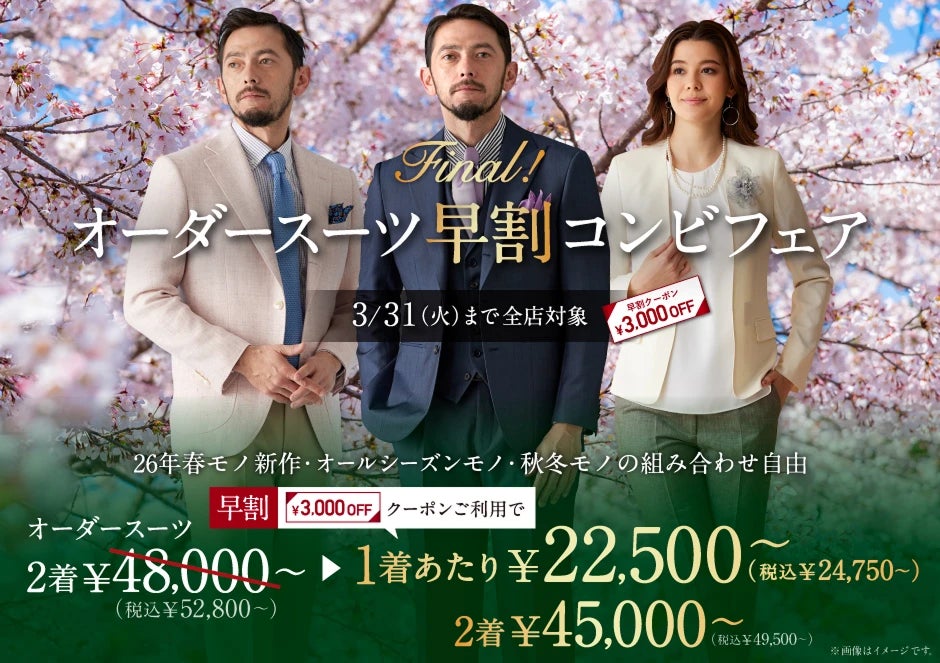 【期間限定!オーダースーツ2着コンビフェア】