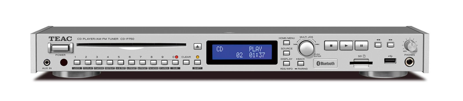 『CD-P750』はスロットイン式のCDプレーヤーにAM/FMチューナーを搭載し、SDカード、USBメモリーからの再生/ダビングも可能でBluetooth®レシーバー機能も搭載した、オールインワンのCDプレーヤーです。