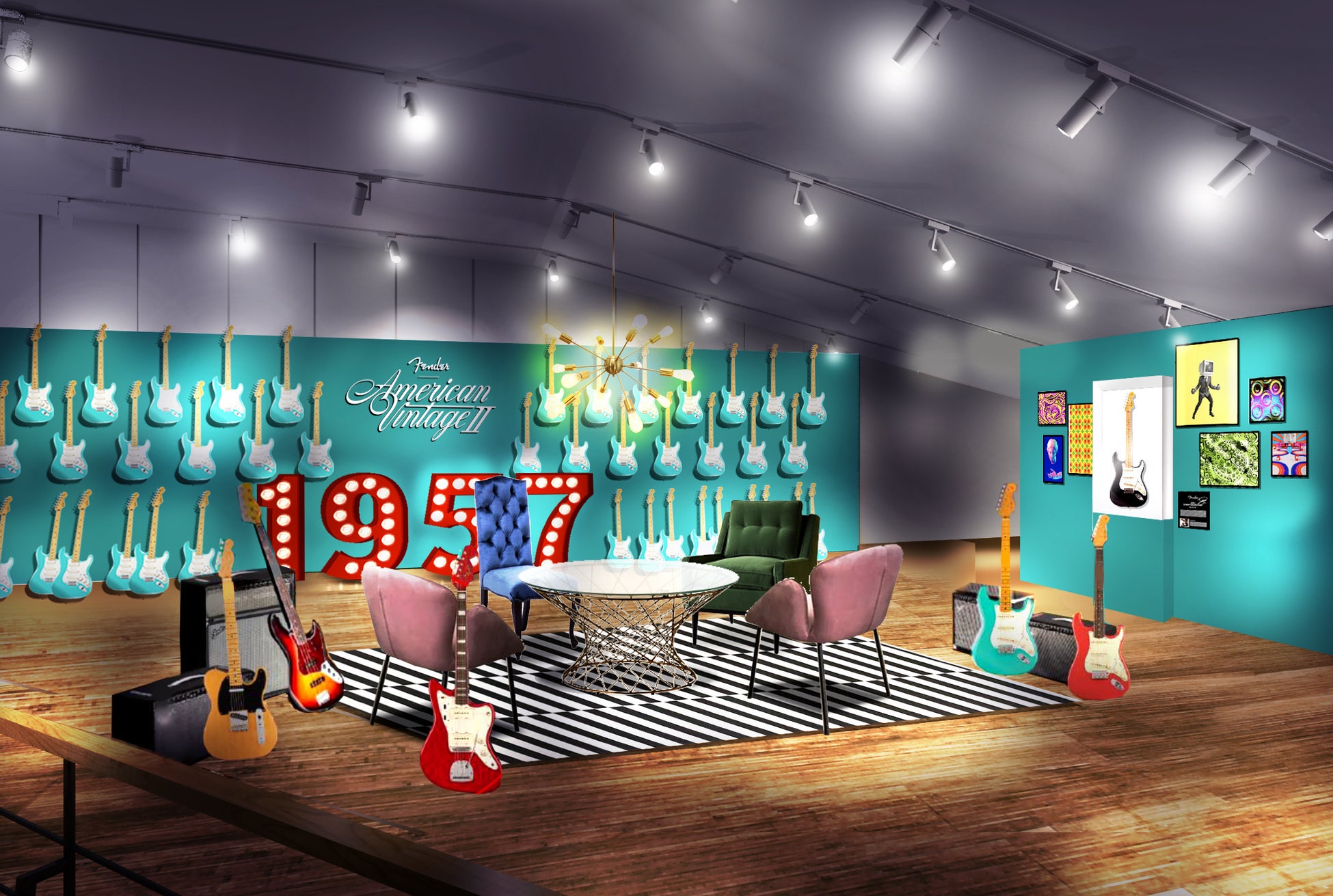「American Vintage II シリーズ」の発売を記念して、フェンダーの発祥地であるアメリカと東京の2拠点でポップアップイベントを同時開催します。アメリカは、現地時間10月14日(金)にオースティン(Austin City Limits Music Festival)にて、東京は10月14日(金)・15日(土)に東京表参道の「BA-TSU ART GALLERY」にて、テレキャスターやストラトキャスターが初めて発売された50年代へタイムスリップしたような特別空間の中、「American Vintage II シリーズ」をお楽しみいただける体験型イベントを開催します。