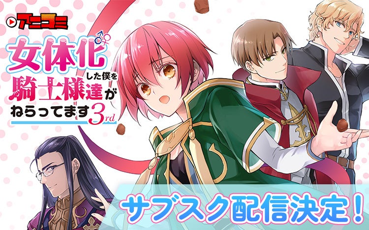 この度、マルチデバイス対応電子書籍レンタルサイト「Renta!」(https://renta.papy.co.jp/)にて原作漫画が配信中の、Renta!オリジナル作品『アニコミ「女体化した僕を騎士様達がねらってます 3rd」』のサブスク配信が決定いたしました。