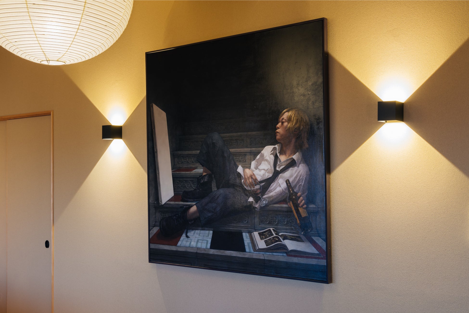 屋内は、元の旅館にあった意匠の一部が残された伝統を未来へつないでいく空間。リビングダイニングの役割を果たす二間続きの和室からは熱海湾の景色が望め、浴室は源泉かけ流しの温泉がいつでも楽しめる檜風呂となり、心と体を癒すくつろぎのバスタイムが過ごせます。また、ベッドルームにはこだわりのインテリアがふんだんに配置され、伝統とアートの調和を演出します。