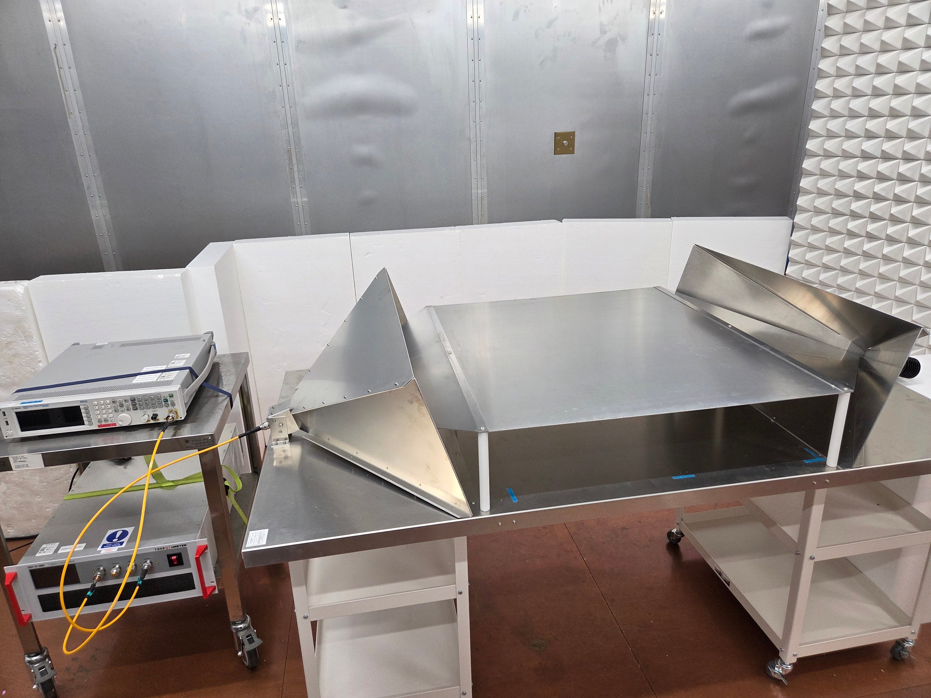 これによりマイクロ波試験システムから30cmの距離にて3kV/mの実現が可能となり、RTCA/DO-160*6 などで規定される高い強度の無線周波数試験(HIRF試験)が可能となりました。また、HIRF試験に加えて、連続波(CW)によるエネルギー破壊評価を実験室レベルで行うことが可能となりました。