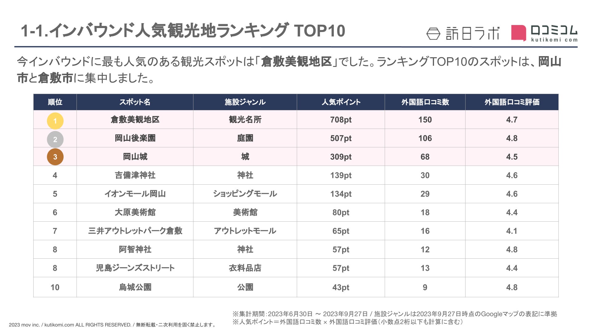 【独自調査】インバウンド人気観光地ランキング岡山編:コロナ後 最新の訪日客の支持を集めたスポットTOP10を発表 #インバウンドMEO