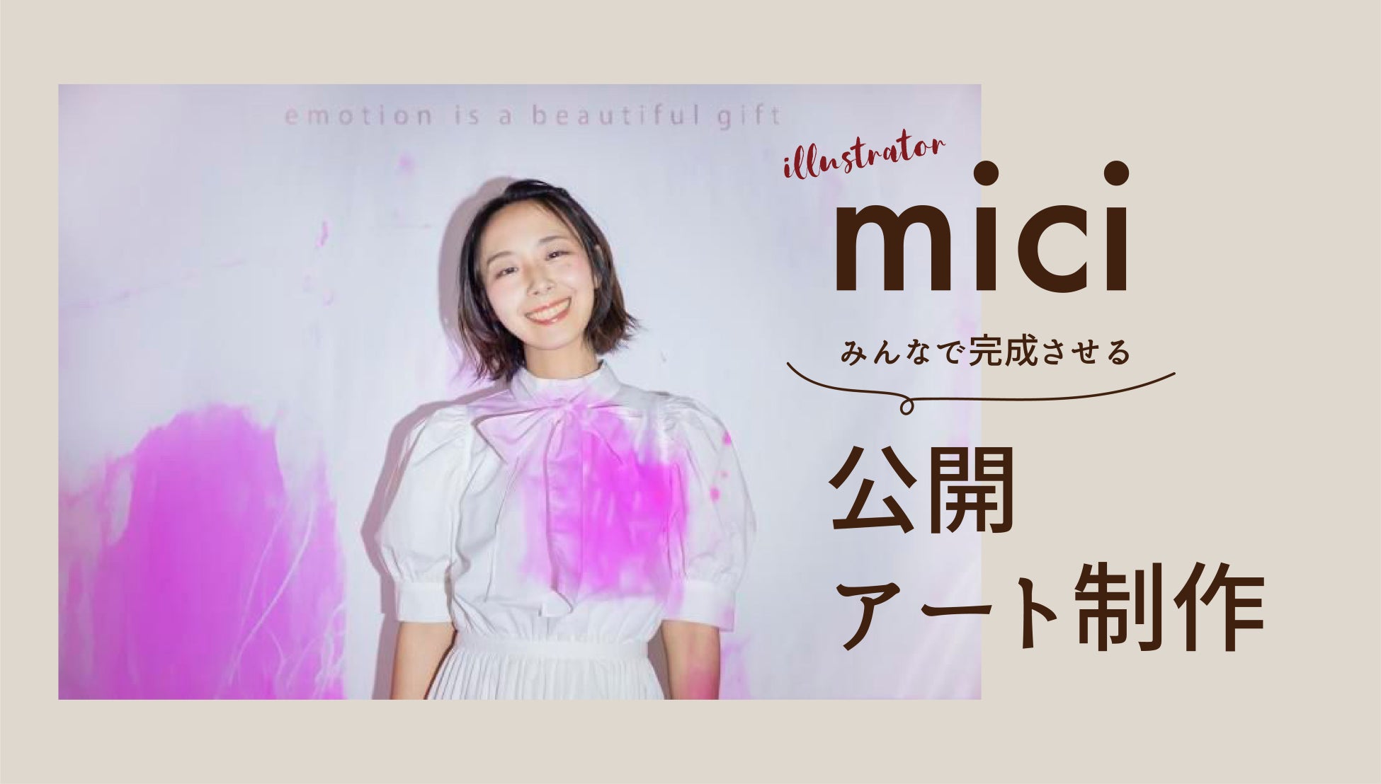 昨年9月に実施したライブペイントが大好評だった、立川市出身のイラストレーターmici(読み:ミチ)をお呼びして、me:rise立川をイメージしたアートをその場で制作していただきます。今回の開催はイベント中に参加者が筆を持ち、制作に加わる参加型イベントです。