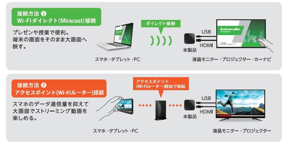 スマートフォン・タブレット・パソコンの映像をワイヤレスで大型ディスプレイに映せる!Wi-Fiルーター接続にも対応するMiracastレシーバーを新発売