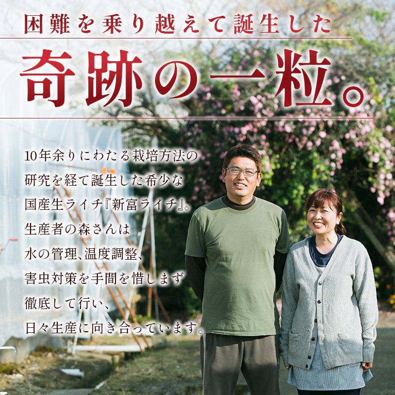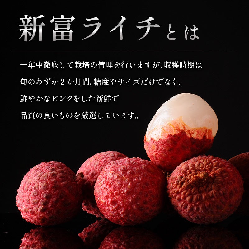 収穫期間は5月~7月と短く、収穫後も4~5日で味が落ちてしまうほど繊細な新富ライチは「冷凍では絶対に味わえないおいしさ」と全国的に高い評価を得ています。