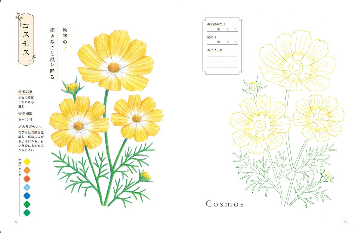 ●色見本があるから、初心者でも簡単! 気軽にぬり絵を楽しめます。