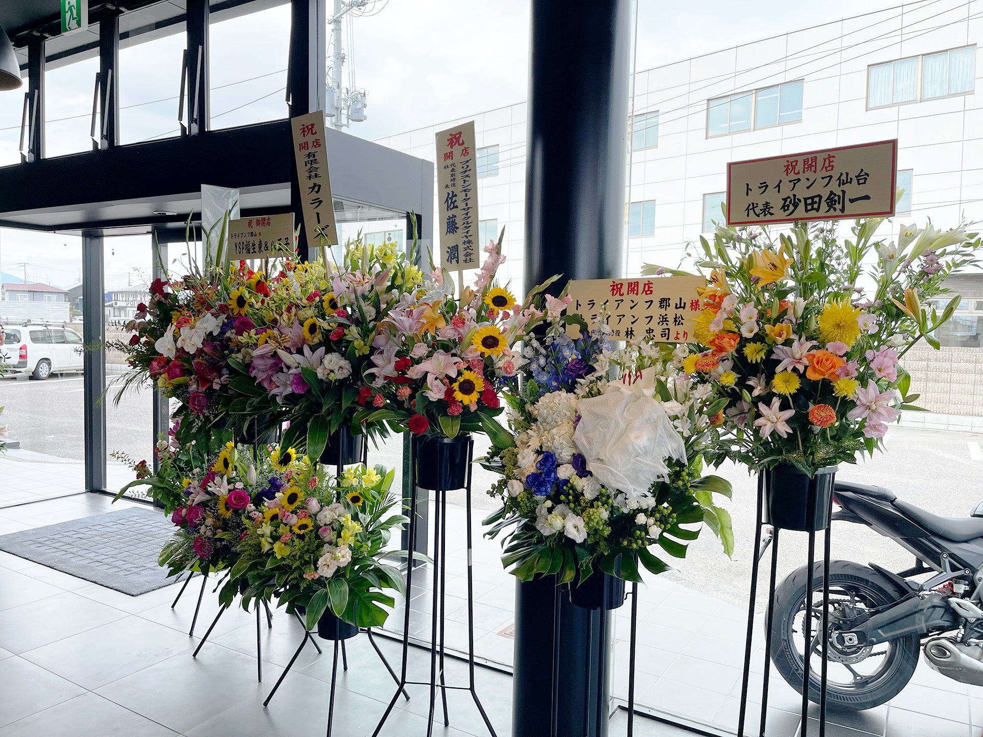 今回、開設した新店舗はショールームに全面ガラスを施し、外部からショールーム内部の展示車両などをご覧いただける店舗となっています。また、郡山市の中心部からほど近い、県道17号線(昭和通り)沿いの笹原川近くに位置し、路面からの視認性もよく、多くのライダーの皆様がアクセスし易い店舗となります。