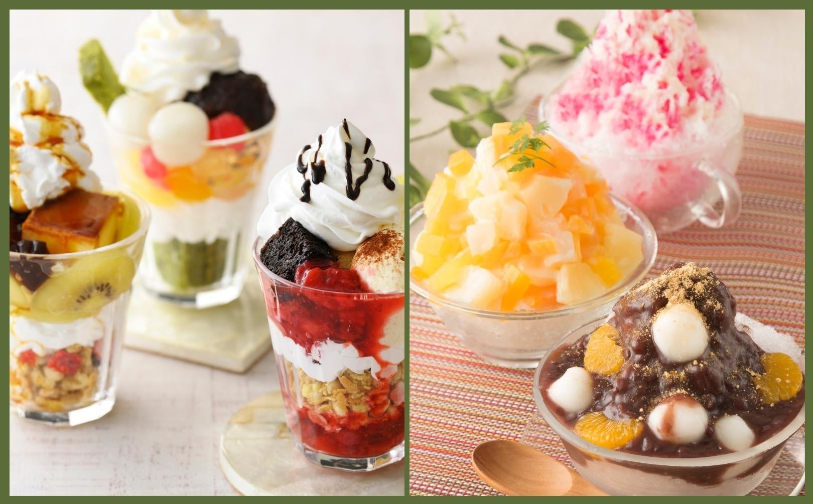 もっちり白玉など、様々なアイテムでオリジナルパフェが作れる『パフェバー』、これからの季節にピッタリ!ひんやり爽快『かき氷』も登場!