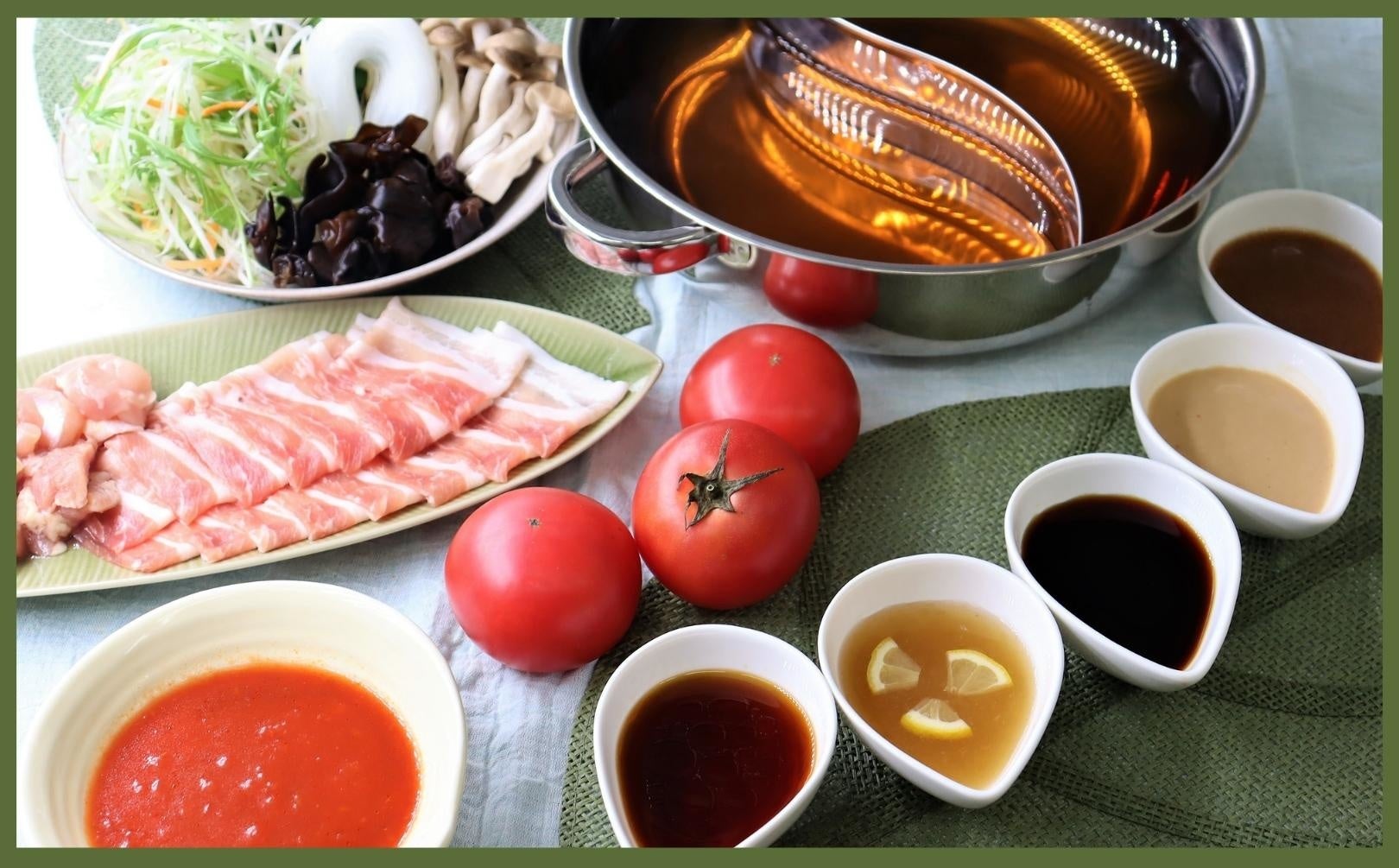 当店自慢のウーロン茶だしをベースに選べる2つのだし、そして、定番のポン酢や胡麻だれ、これからの季節にピッタリなトマトだれなどの5種類のたれと、ねぎや柚子胡椒などの薬味とともに飽きることなくご堪能いただけます!(45分間特別コースについては、豚バラ1皿のみとなります)