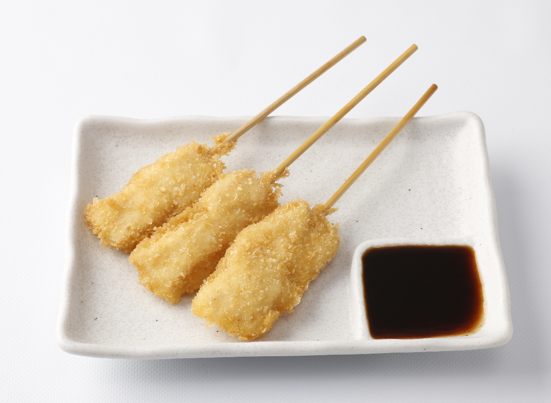 大山どりの特徴でもあるむね肉を始め、サクッとジューシーな味わいの8種類の串揚げをご用意。