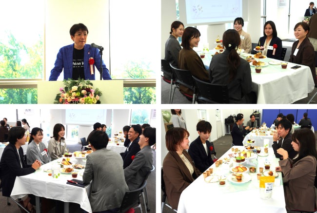 昨年は初めて立食形式で内定者と社員が自由に会話できる場を設け、多くの内定者から「会社の雰囲気や社員の様子を知ることができてよかった」と好評をいただきました。今年度は、より緊張せずリラックスした雰囲気をつくるため、着席形式で食事会を実施。ゆっくり交流ができる場を設けました。