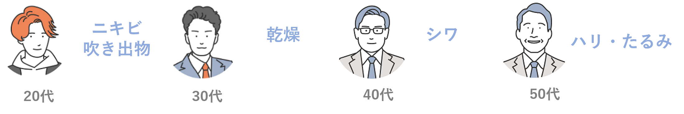 - 年代によって、肌悩みは大きく異なる
