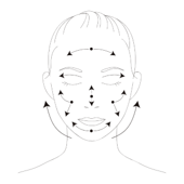 親指以外の4本の指全体を使い、顔の中心から外側に向かってまずは、さっとのばします。その後、4本の指をしっかりそろえて、今度はやさしいタッチでなじませます。強くこすると肌の刺激になるのであくまで「やさしく」が基本です。
