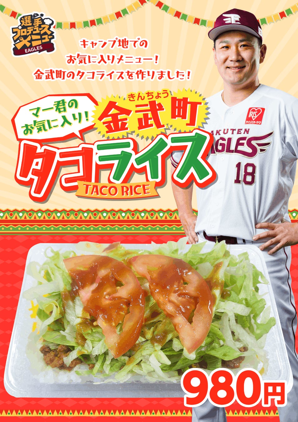 株式会社楽天野球団(本社:宮城県仙台市宮城野区、代表取締役社長:米田 陽介)は、6月24日(金)より、田中 将大選手がプロデュースした「マー君のお気に入り!金武町タコライス」と西川 遥輝選手がプロデュースした「西川遥輝のうめぇーもんが全部つまったうどん【夏】」を、楽天生命パーク宮城の飲食売店にて販売することとなりましたので、お知らせいたします。