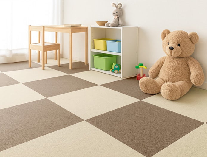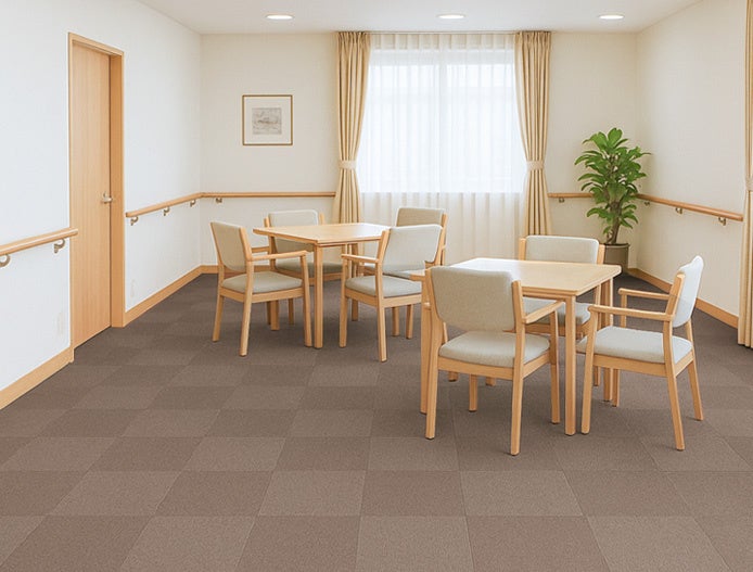 今回発売した防炎タイルカーペットは、オフィスや店舗、宿泊施設など、人が集まる空間での使用を想定して開発され、防炎性能・耐久性を兼ね備えているため、幅広いシーンでご使用いただけます。