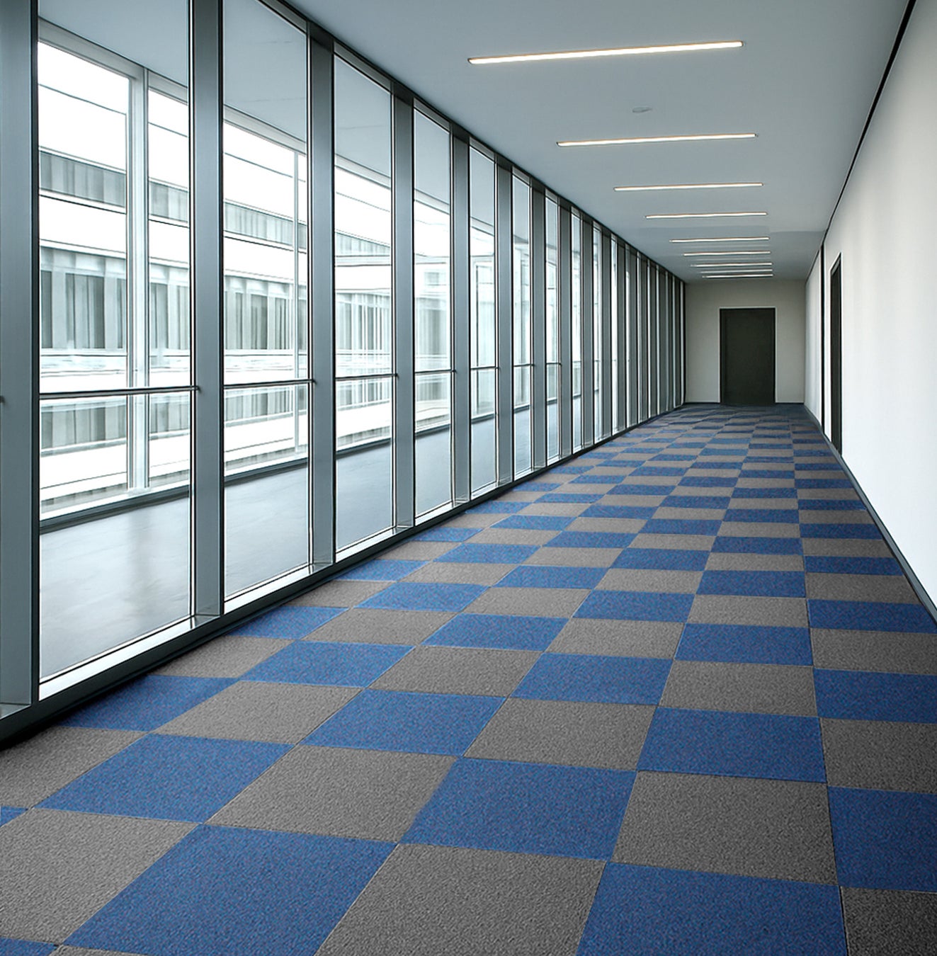 “防炎タイルカーペット”は、防炎性能により、火災発生時の延焼リスク低減に配慮した設計で施設やオフィスでも安心してご使用いただけます。