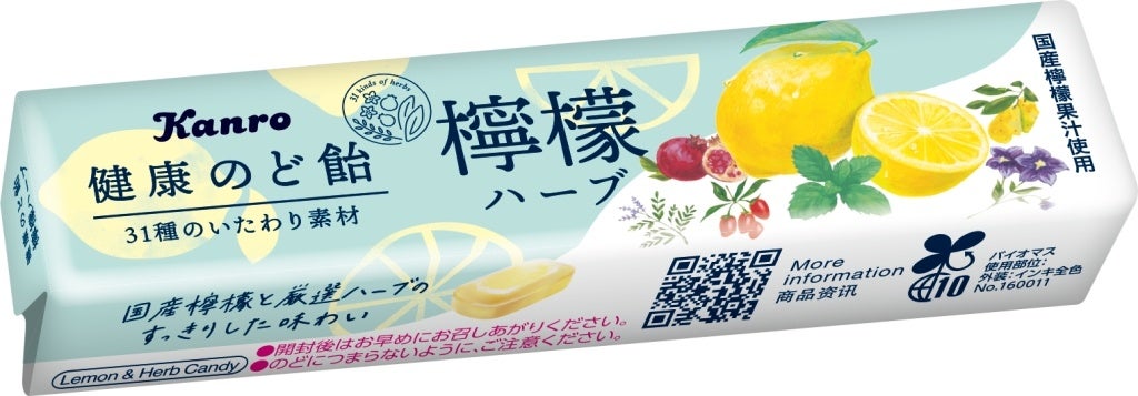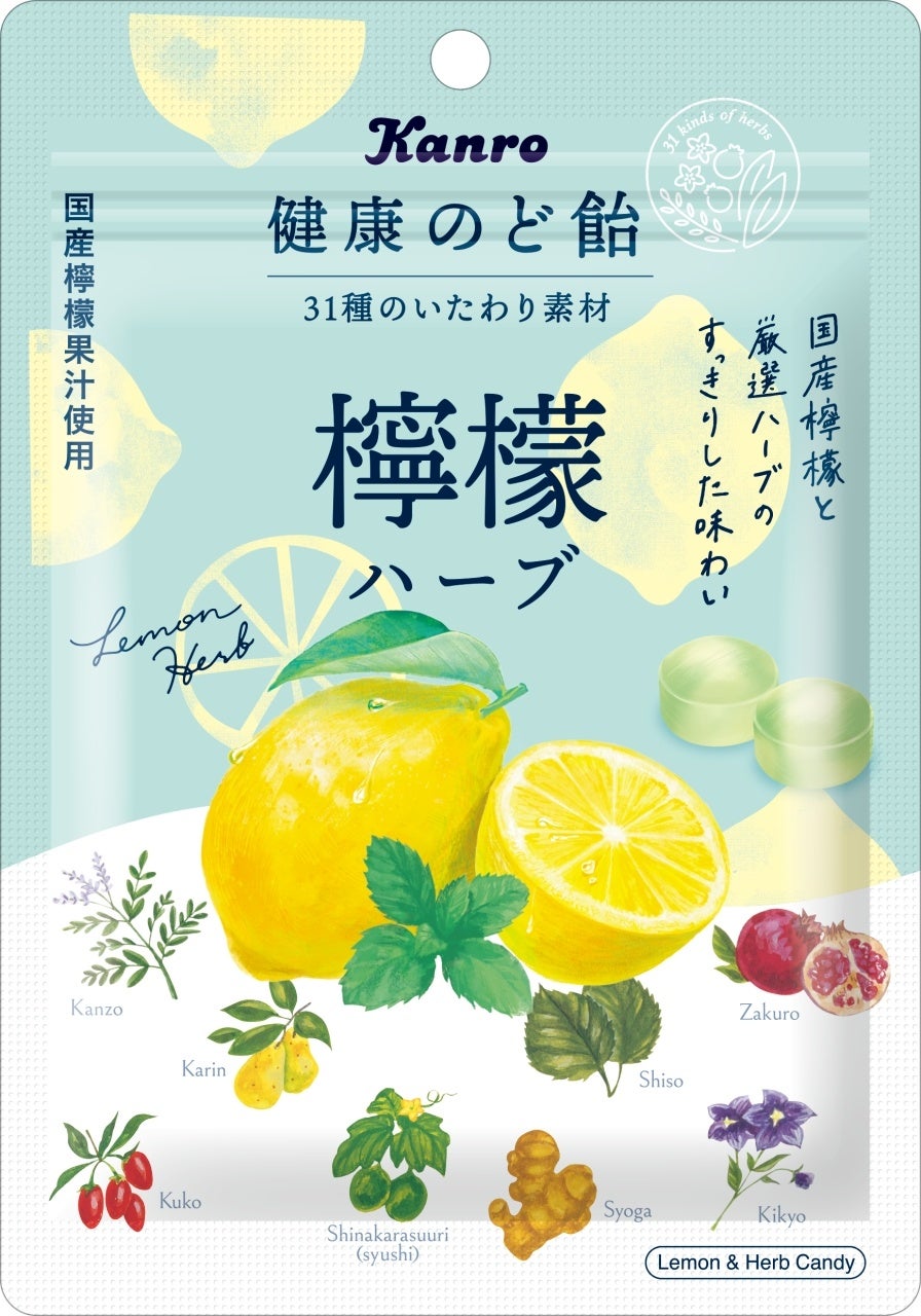 カンロ飴やピュレグミなどでおなじみのカンロ株式会社(本社:東京都新宿区、代表取締役社長 村田 哲也、以下 カンロ)は、和漢素材31種をブレンドし、国産檸檬果汁とハーブのすっきりとした味わいでのどをいたわる「健康のど飴 檸檬ハーブ」を2023年2月27日(月)より、全国で発売します。