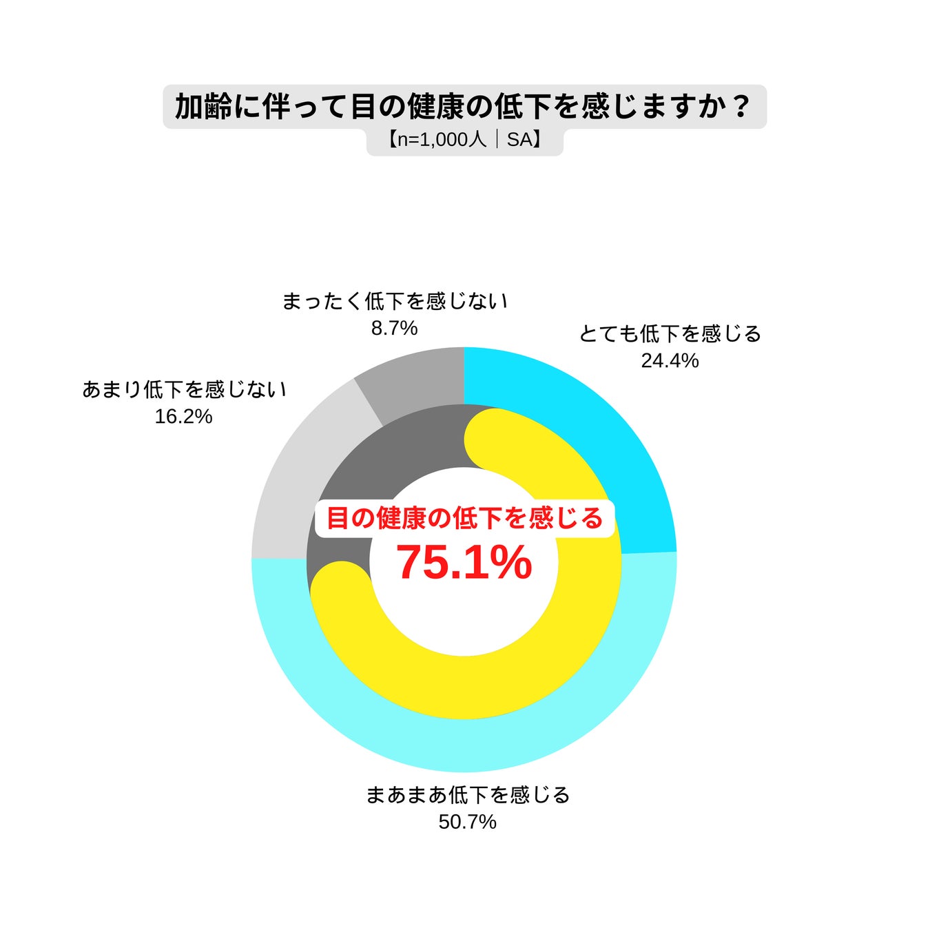 ・加齢による目の健康状態の低下は、全体で75.1%、40代で78.2%が感じている