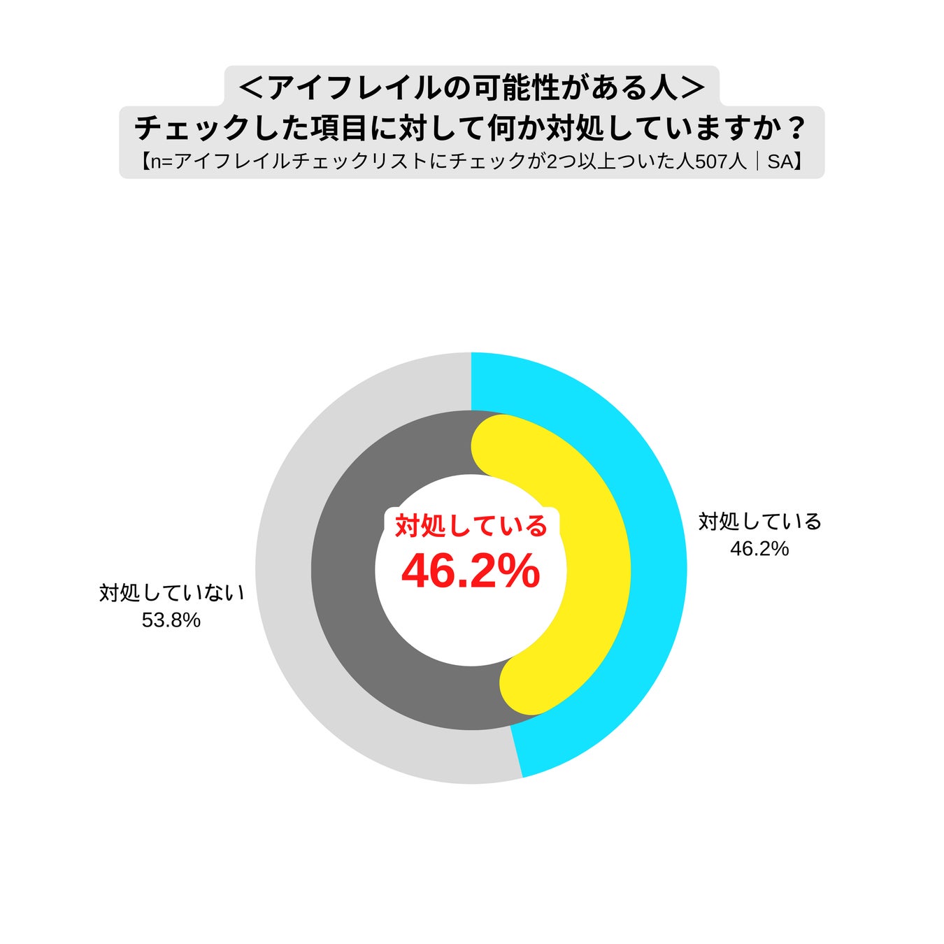 ・アイフレイルに当てはまる症状について対処している人は46.2%で、過半数が対処していない