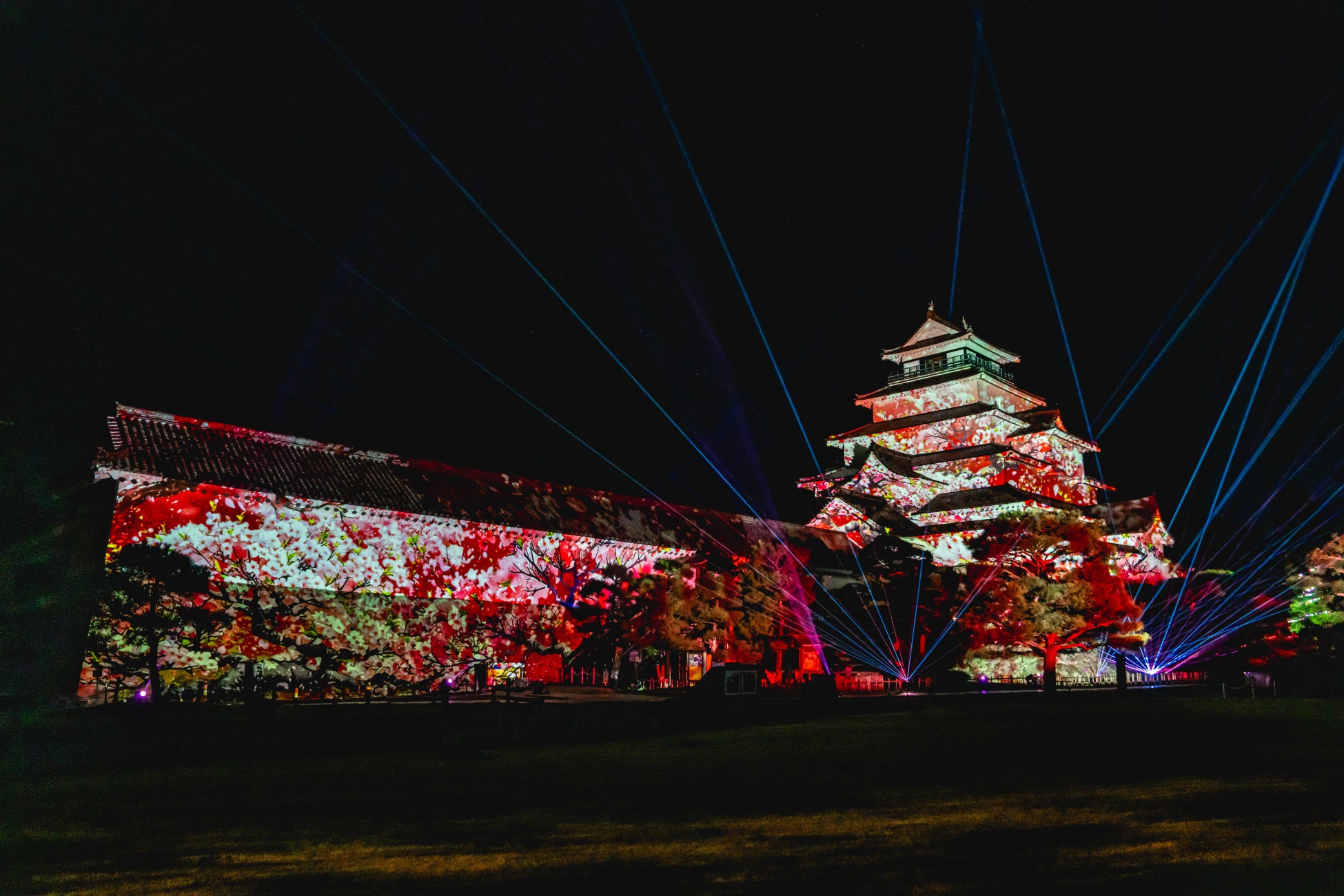 全国の城の中でも屈指の美しさを誇る名城・鶴ヶ城の天守や石垣などに、会津塗や会津絵ろうそく、福島の花といった伝統文化をモチーフとしたデジタルアニメーションや、会津で活躍した絵師・雪村周継の絵画、桜の名所を象徴する美しく咲き誇る百花繚乱の花々のデジタルアートなどのプロジェクションマッピング映像を投影します。