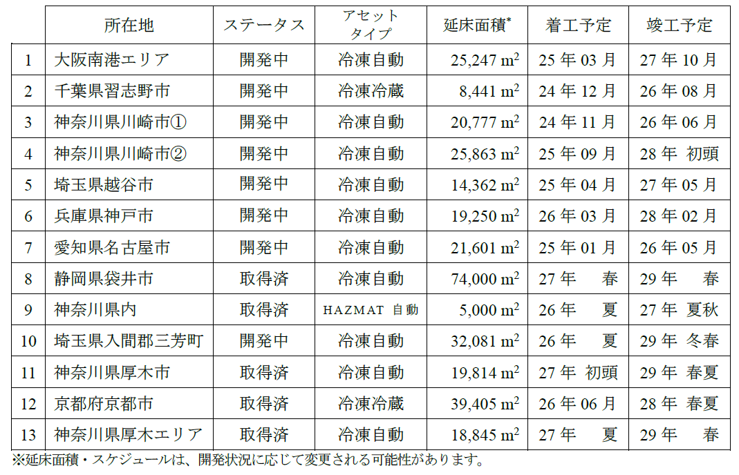 ■物流施設開発予定物件一覧