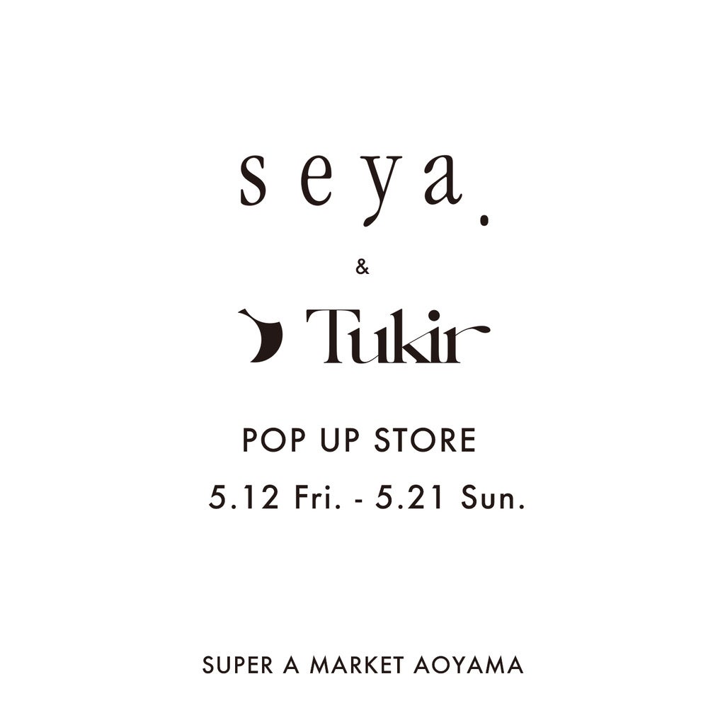 スーパー エー マーケット 青山では、5月12日(金)から5月21日(日)の期間中〈seya. 〉と〈Tukir〉のPOP UP STOREを開催いたします。