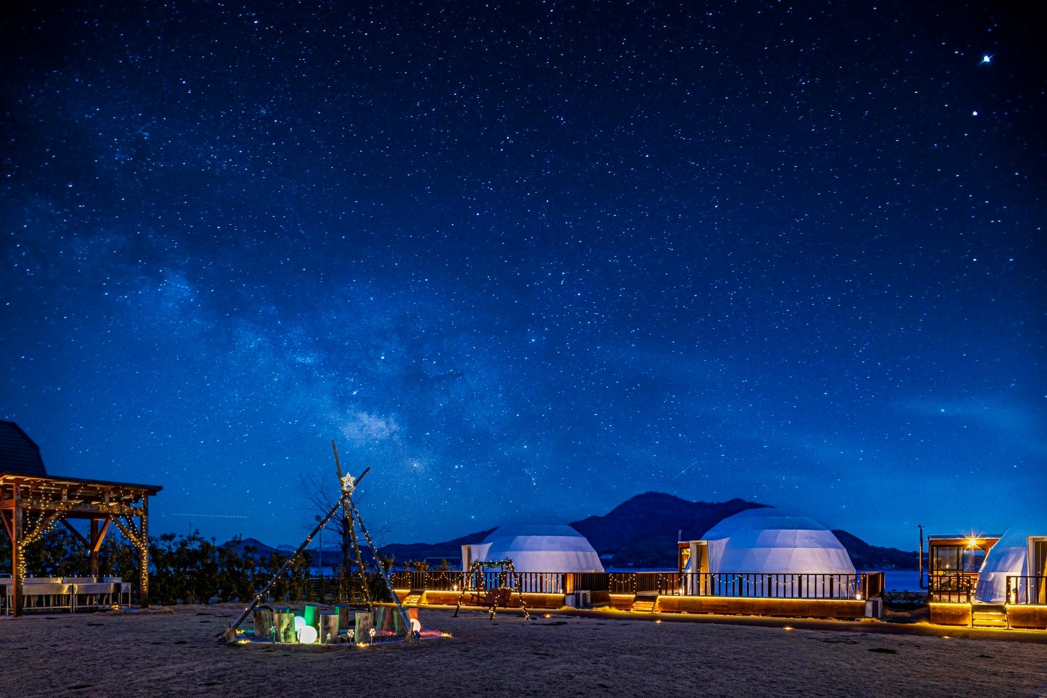 サイクリストの聖地、絶景ロードとしても知られている「しまなみ海道」が結ぶ瀬戸内海のシーサイドに位置しており、広島瀬戸内のリゾート感あふれるアイランドグランピングが楽しめます。