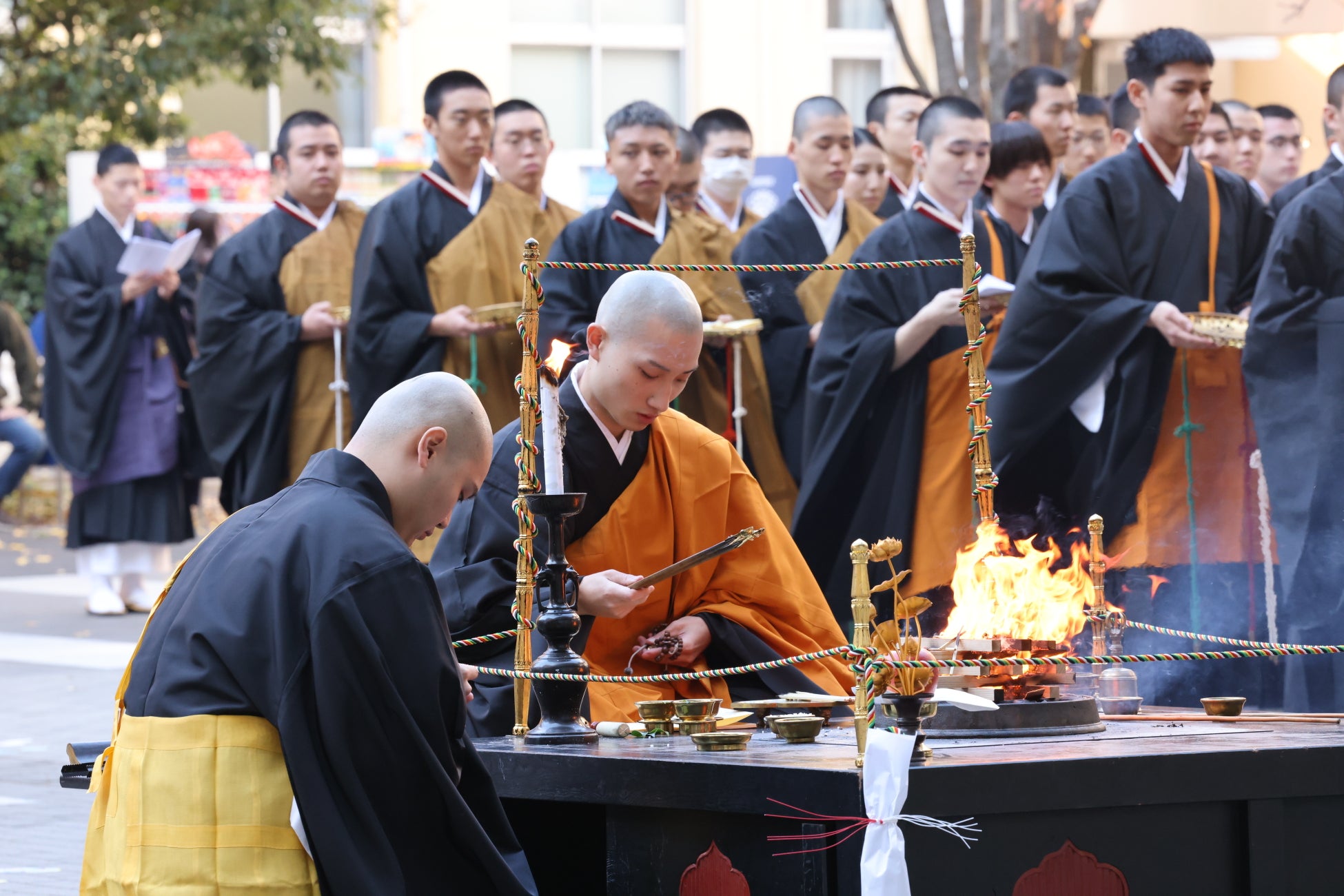 2. 巣鴨の眞性寺から大正大学キャンパスまでを雅楽部や法螺貝の音とともに練り歩く「お練り」や本学設立四宗派(天台宗・真言宗豊山派・真言宗智山派・浄土宗)および時宗の学生による合同法要、お釈迦様が食したとされる乳粥や冷えた身体を温めるチャイの提供などを行います