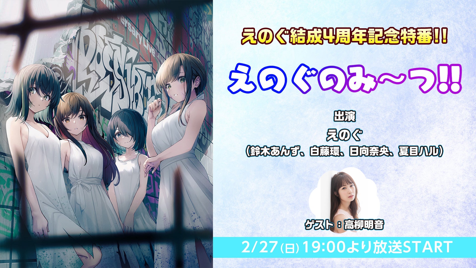 番組名:【ゲスト:高柳明音】えのぐ結成4周年記念特番!! えのぐのみ~つ!!