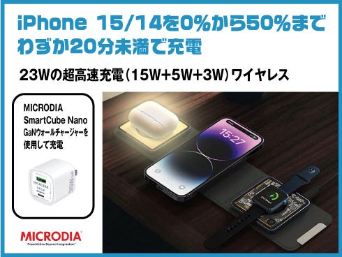 宏福商事合同会社(本社:東京都荒川区)は、高性能モバイルアクセサリーブランド「MICRODIA(マイクロディア)」の総代理店として、発売以来、大変ご好評につき一時品薄となっていたワイヤレス充電器新製品「SnapPad Visi-TRIO 23W 4-in-1 折りたたみワイヤレス充電ステーション」の再入荷および販売再開をお知らせいたします。