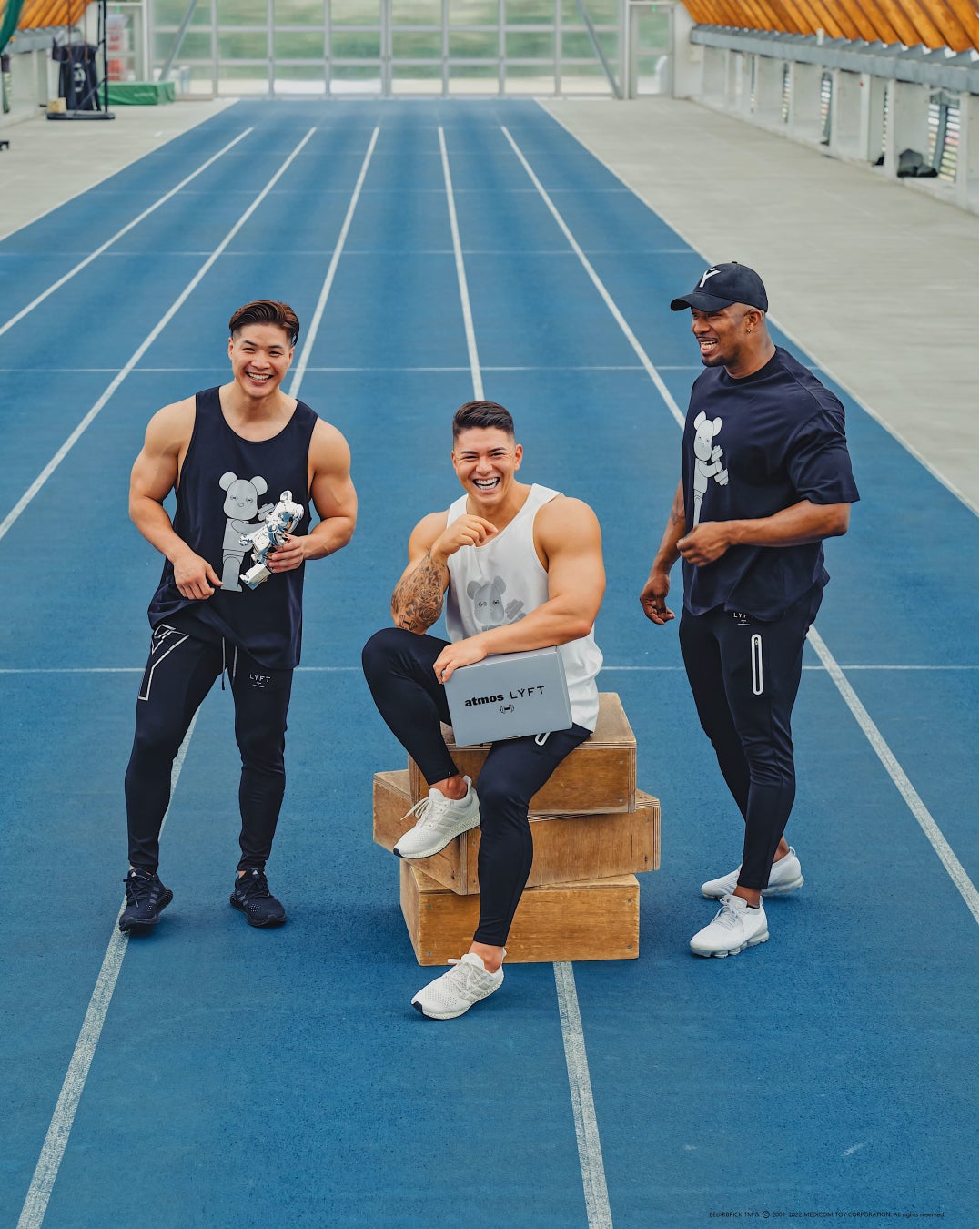 「atmos」とフィットネスアパレルブランド「LÝFT」、「BE@RBRICK」のトリプルコラボレーション「BE@RBRICK atmos × LÝFT 100% & 400%」が発売。