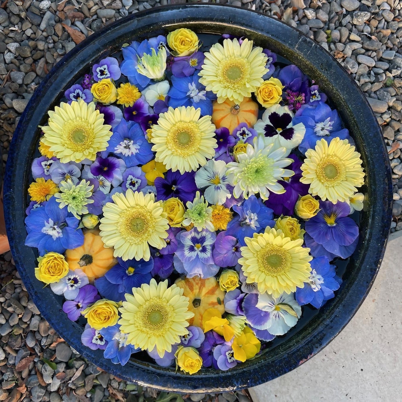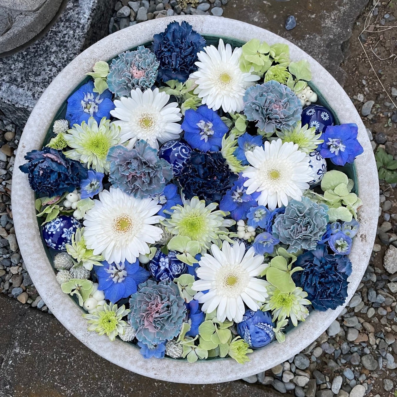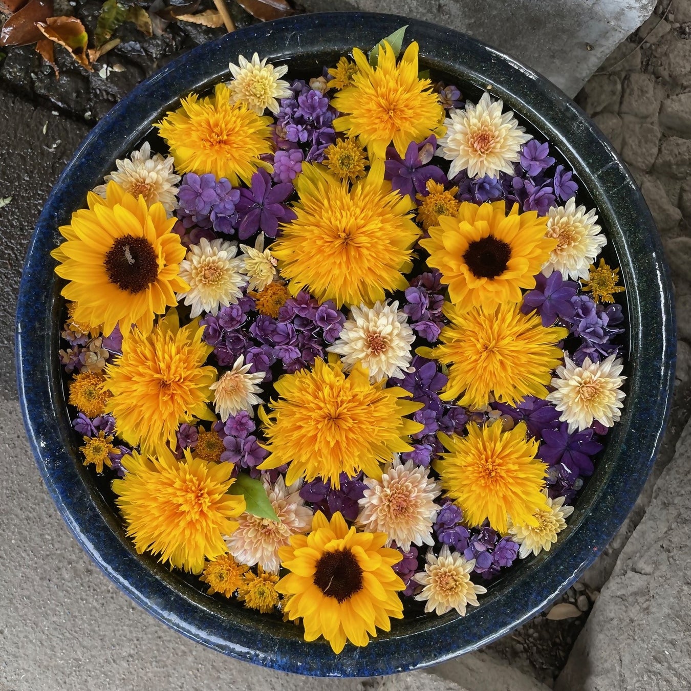 ※花手水:参拝前に手や口を清めるために設けられた寺社の手水舎(ちょうずしゃ)や、公共施設などに置いた睡蓮鉢に色とりどりの花を浮かべたもの。