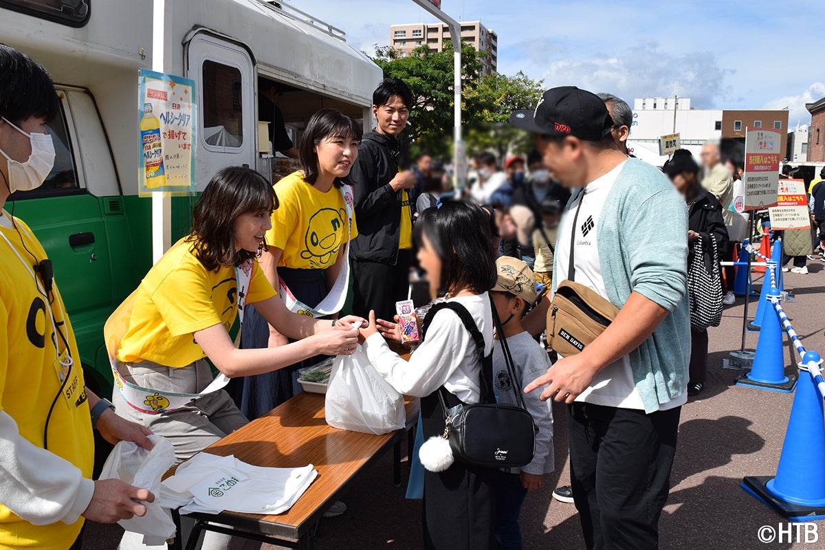 サッポロファクトリー会場の番組コラボグルメ販売コーナーでは出演者も接客し感謝の気持ちを伝えました。
