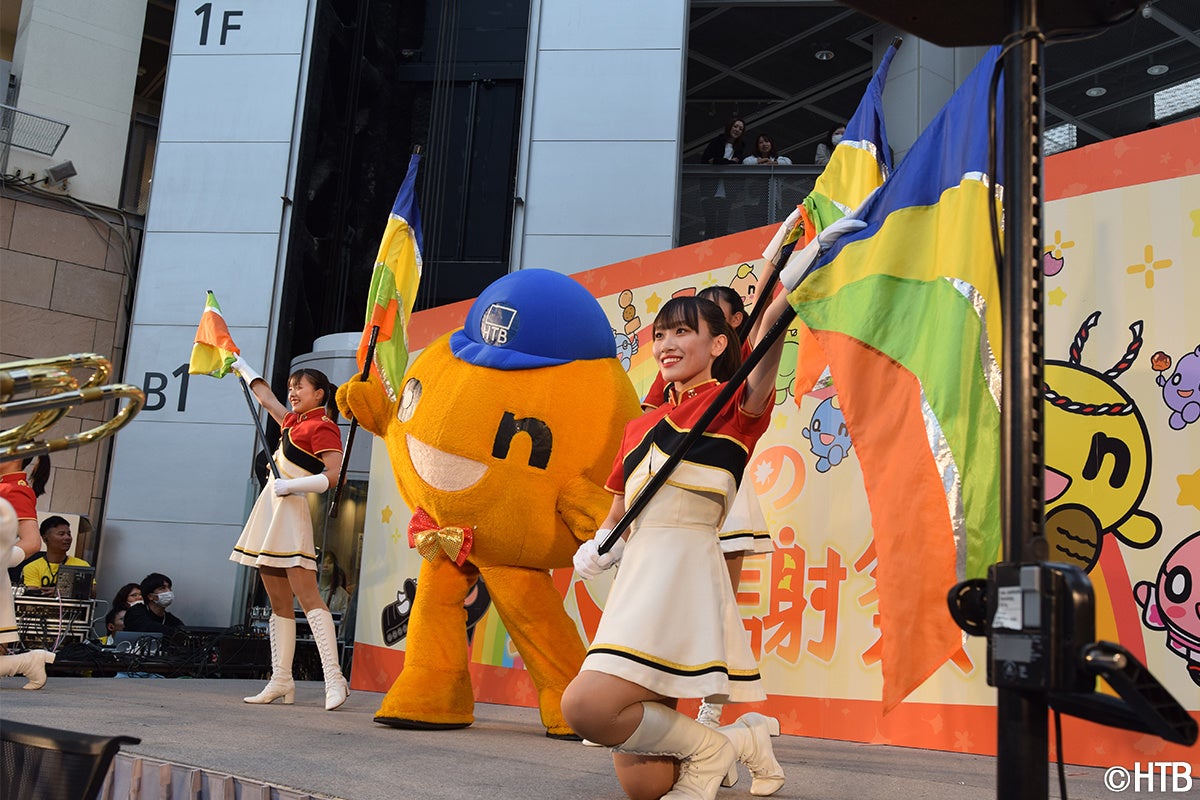 会場では、各番組出演者が開発したコラボグルメやオリジナルパンなどを販売したほか、サッポロファクトリー会場のステージでは、onちゃんが北海道警察音楽隊のカラーガード隊と一緒にフラッグなどを使ったパフォーマンスに挑戦し、多くのお客様で賑わいました。