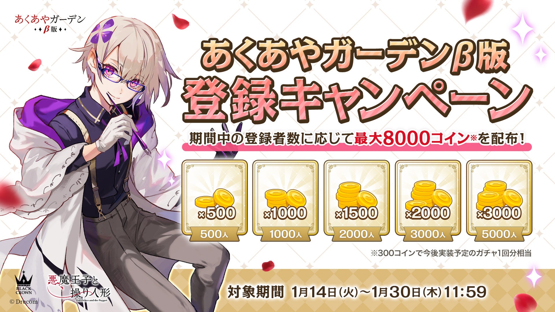 株式会社ドリコム(本社:東京都品川区、代表取締役社長:内藤裕紀、以下ドリコム)は、弔花者と呪いを癒すダークファンタジー『悪魔王子と操り人形(あくあや)』の公式Webファンコミュニティ「あくあやガーデンβ版」を、本日2025年1月14日(火)よりオープンいたしました。