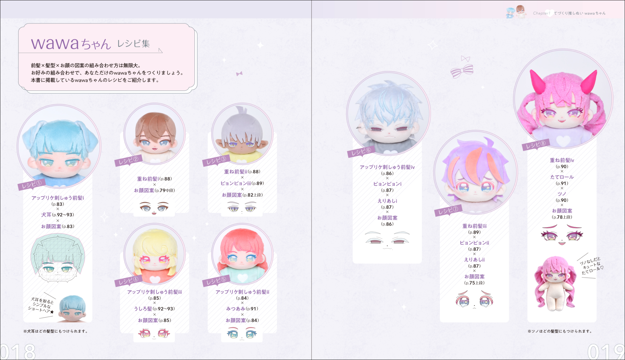 前髪×髪型×お顔の図案の組み合わせ方は無限大! あなただけのwawaちゃんをつくりましょう。