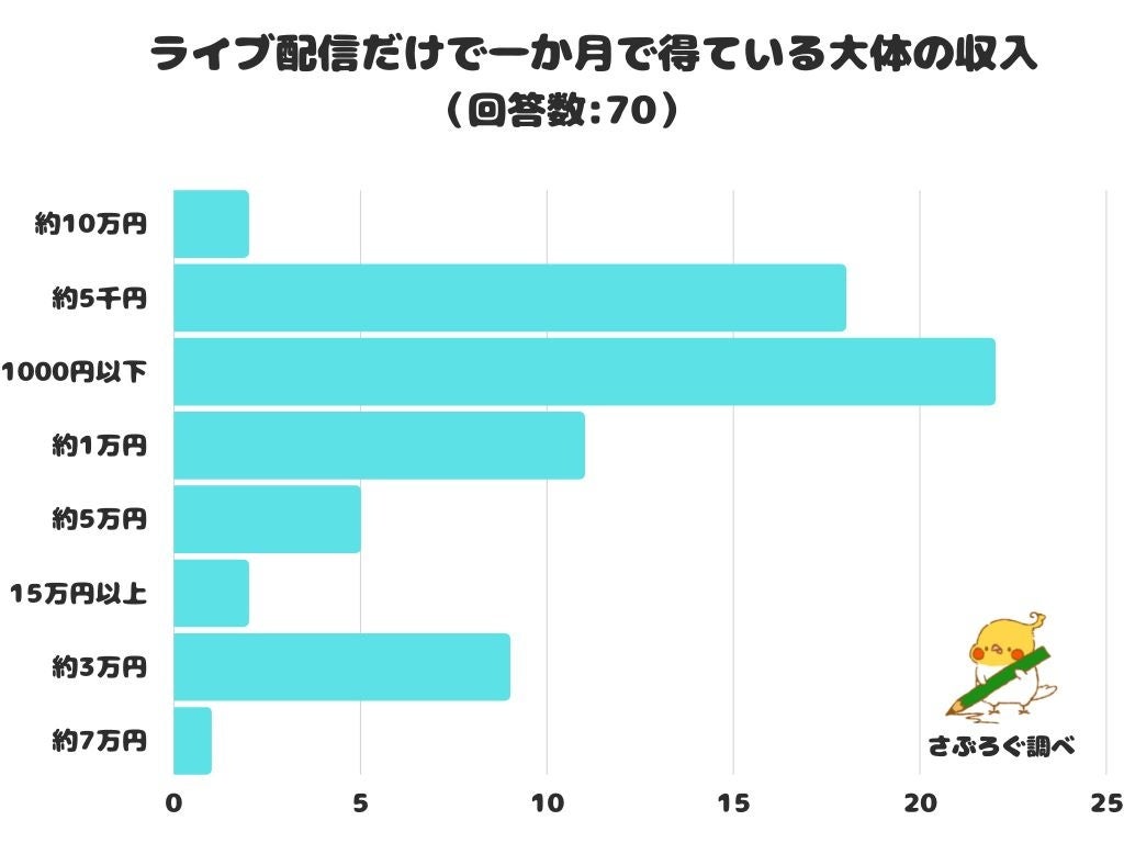 【調査レポート】ライブ配信だけで一か月で得ている大体の収入は?1位は「1000円以下」です!