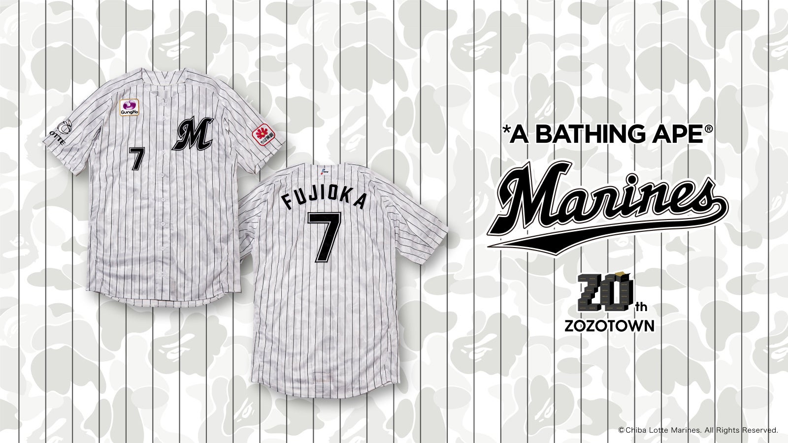 ZOZOTOWN20周年を記念し、千葉ロッテマリーンズ×BAPE®のコラボ限定アイテムを6月1日よりZOZOTOWNで販売!