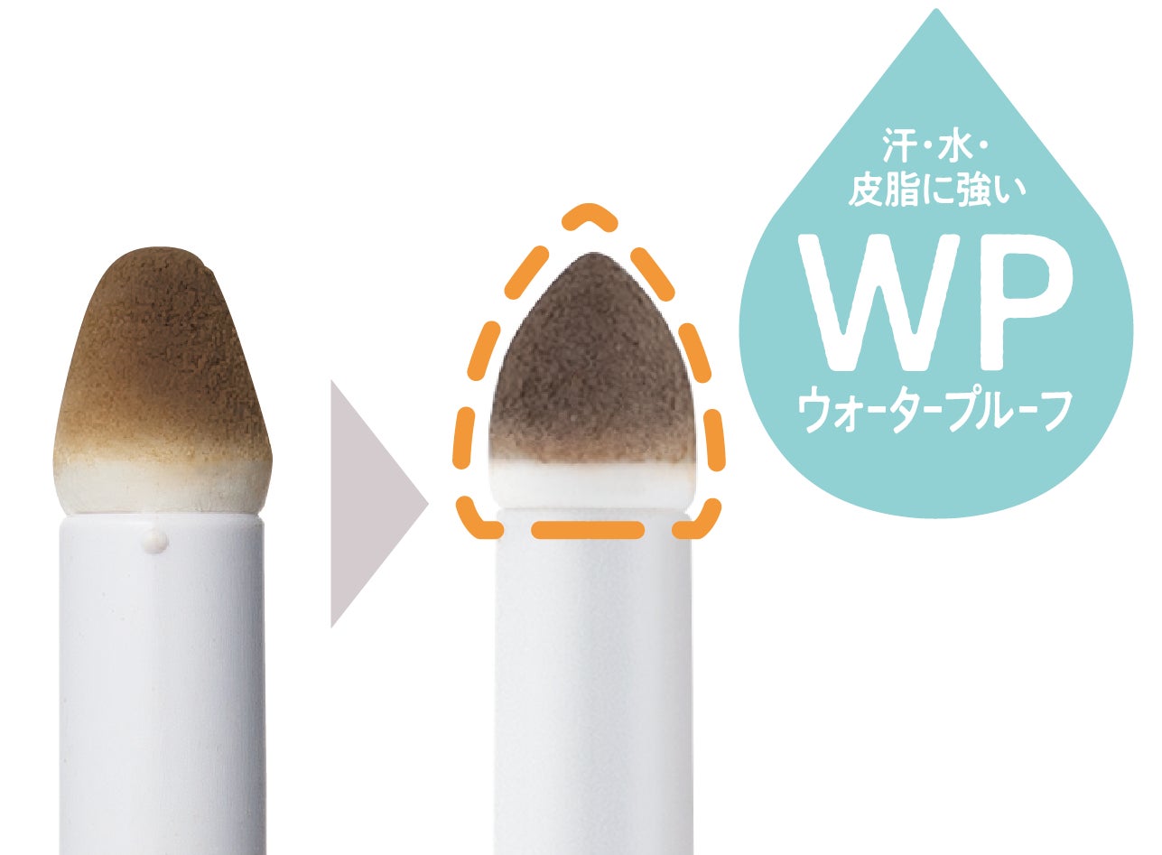 付属チップもアイブロウパウダーのブラシの使い心地をイメージして、面で塗りやすく肌あたりの柔らかいスポンジに変更。