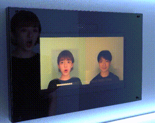 自分自身が思う自分と、他者が思う自分がどのように変容し得るのかを探索する体験型の作品です。二つのブースでカメラを通して映し出される映像は、二人それぞれ自分の体の動きを映し出しています。やがて、自分の顔ともう一人の顔とが次第に融合していきます。人間の変化知覚特性に基づいて、計算的に作り出された滑らかな変化をリアルタイムに再合成することで、変化を知覚しない顔の変化を引き起こします。