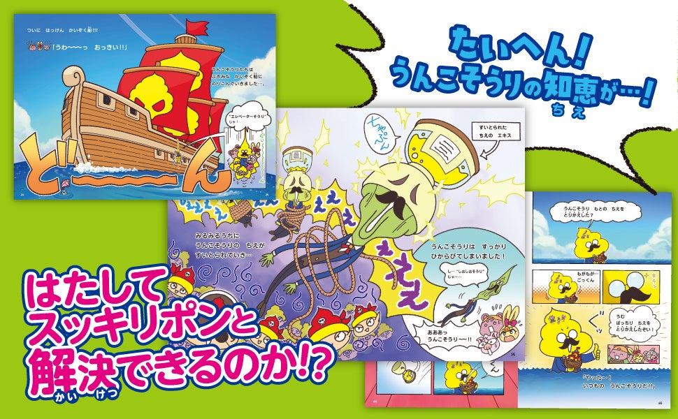 最新刊では、ふんばりランドのリーダー・うんこそうりが恐ろしい海賊団に立ち向かいます!