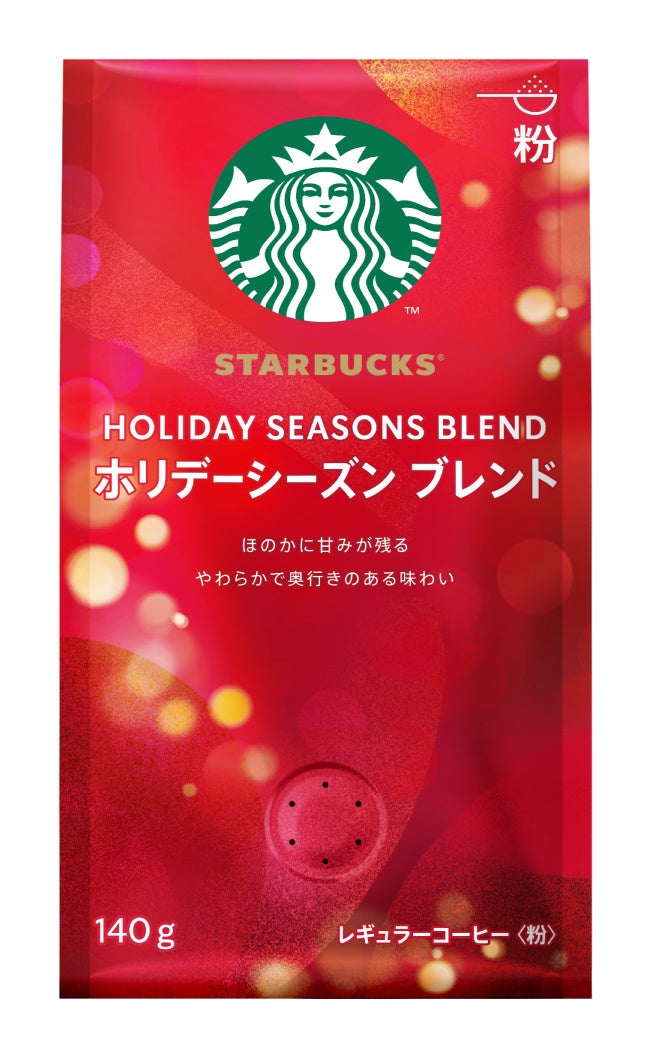 「スターバックス® ホリデーシーズン ブレンド」製品は、スターバックスの伝統と祝祭気分にあふれたコーヒーを、ホリデーの時季におうちで楽しむために開発されました。冬季限定製品である「スターバックス® ホリデーシーズンブレンド」は、明るく鮮やかな印象のラテンアメリカ産とコクのあるインドネシア産のコーヒーをブレンドし、ほのかに甘みが残る、やわらかで奥行きのある味わいのコーヒーです。この時季ならではの、心あたたまる一杯が楽しめます。自宅やオフィスで手軽に楽しめる家庭用コーヒー製品として「スターバックス オリガミ® パーソナルドリップ® コーヒー」、「レギュラーコーヒー(粉)」の2タイプのラインアップがあります。