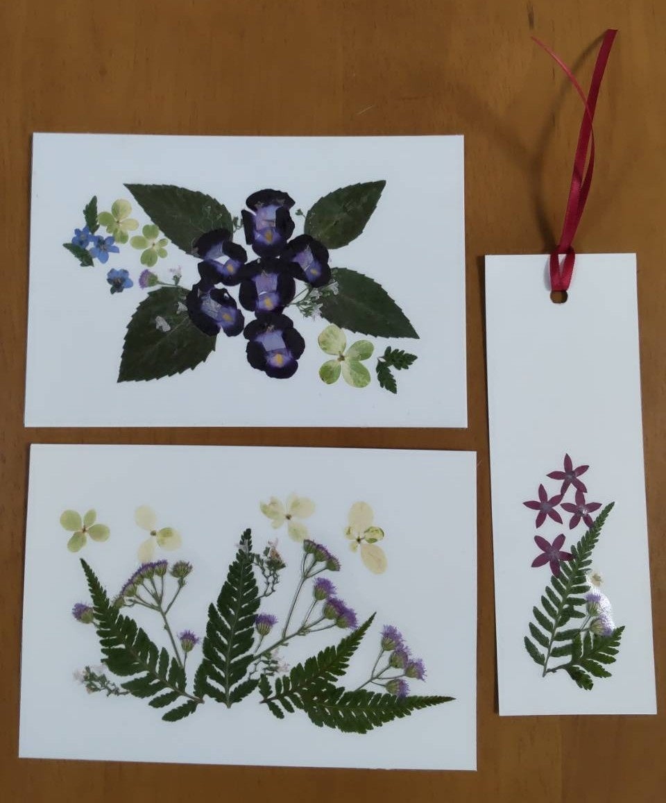 押し花を使ったカードとしおりを作っていただきます。