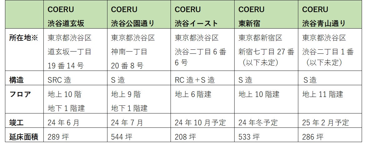 東急不動産株式会社(本社:東京都渋谷区、代表取締役社長:星野 浩明、以下、「当社」)は、柔軟な発想と自由な遊び心で環境課題に向き合う都市型コンパクトビルとして展開する「COERU(コエル)」シリーズに、「COERU 渋谷道玄坂」、「COERU渋谷公園通り」、「COERU渋谷イースト」、「COERU東新宿」、「COERU渋谷青山通り」の5物件が24年度中に竣工し、新たに加わることをお知らせいたします。