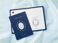 銀座本店のシンボルである時計をモチーフにした婚姻届。提出用と保管用をご用意しています。保管用は写真を貼ることも可能です。また、内側には星座がちりばめられた時計のイラストが描かれており、上にリングを置いて写真を撮影することもできます。おふたりがご夫婦になられる特別なアイテムが素敵な思い出となるようにご用意させていただいております。