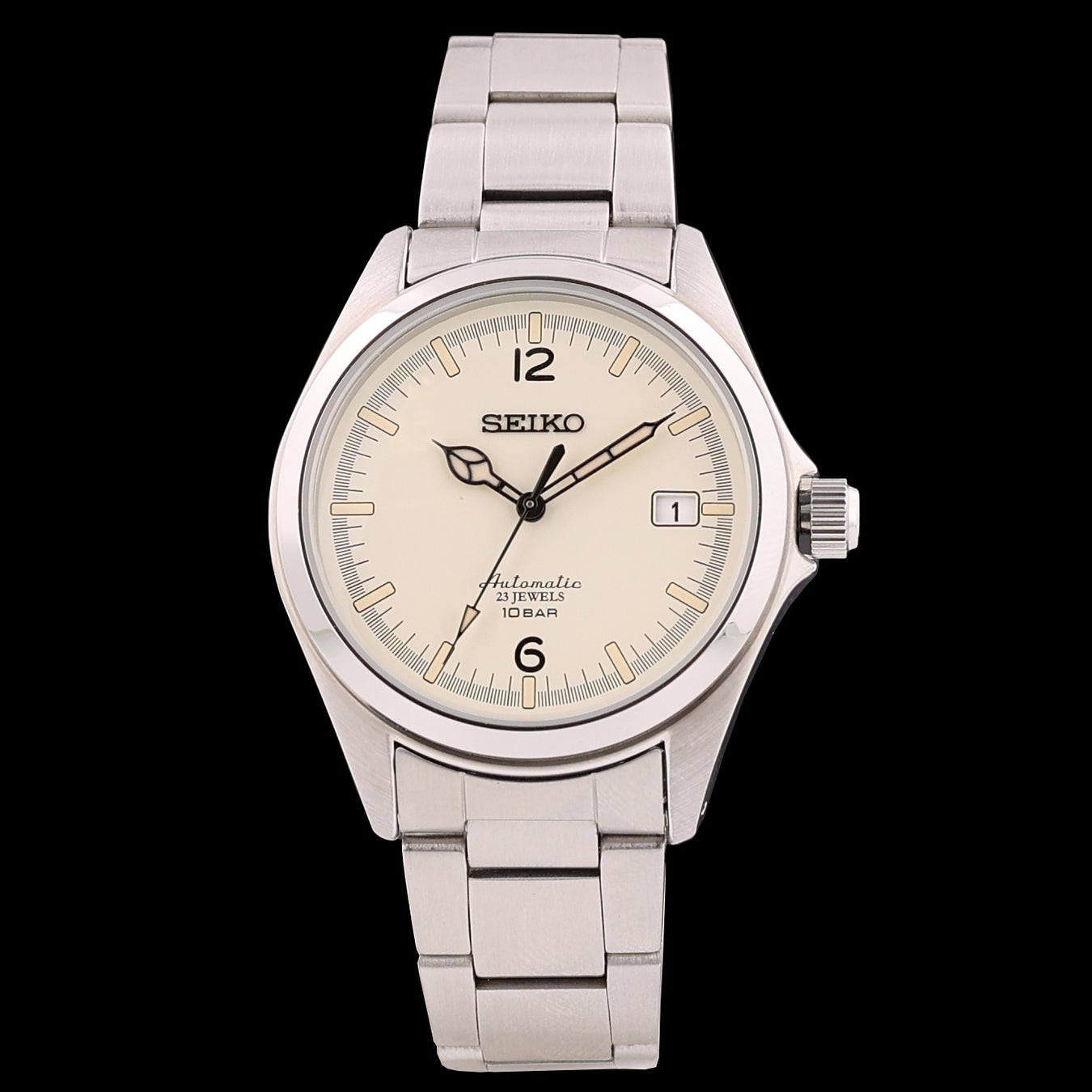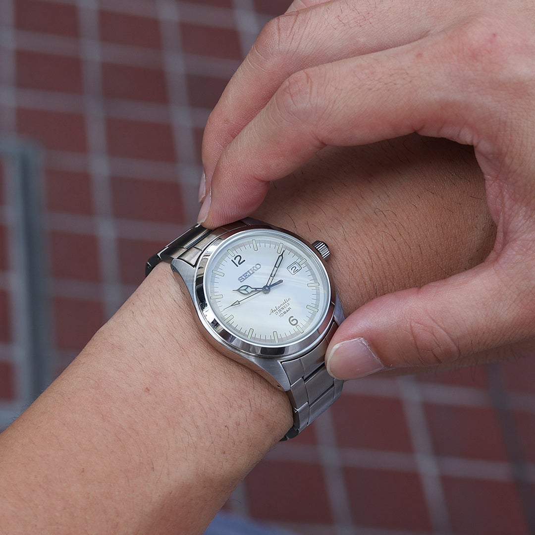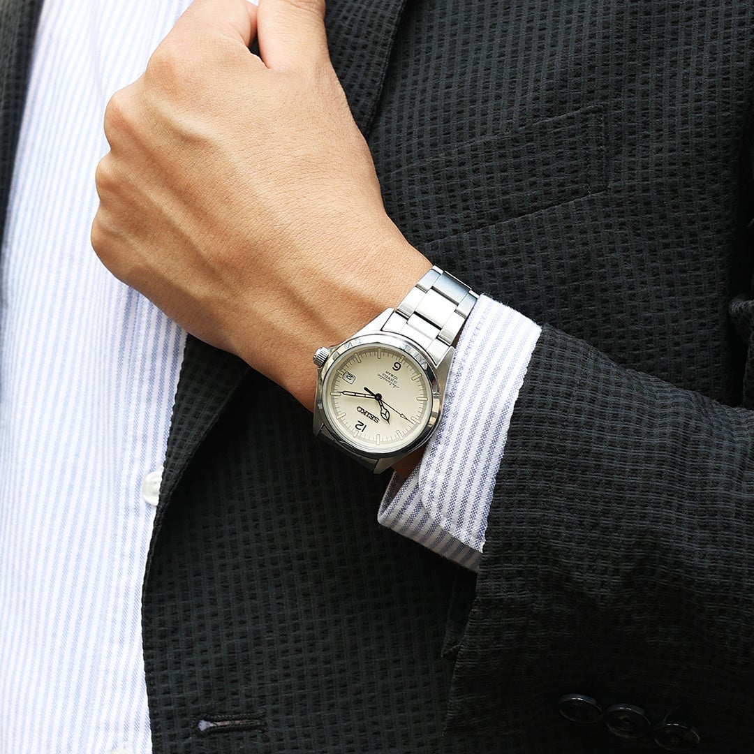 文字盤色に選んだマットアイボリーは、TiCTAC35周年記念コラボレーションモデルSZSB006(ブラックダイヤル)にも採用したトレンド感のあるヴィンテージテイストを意識。